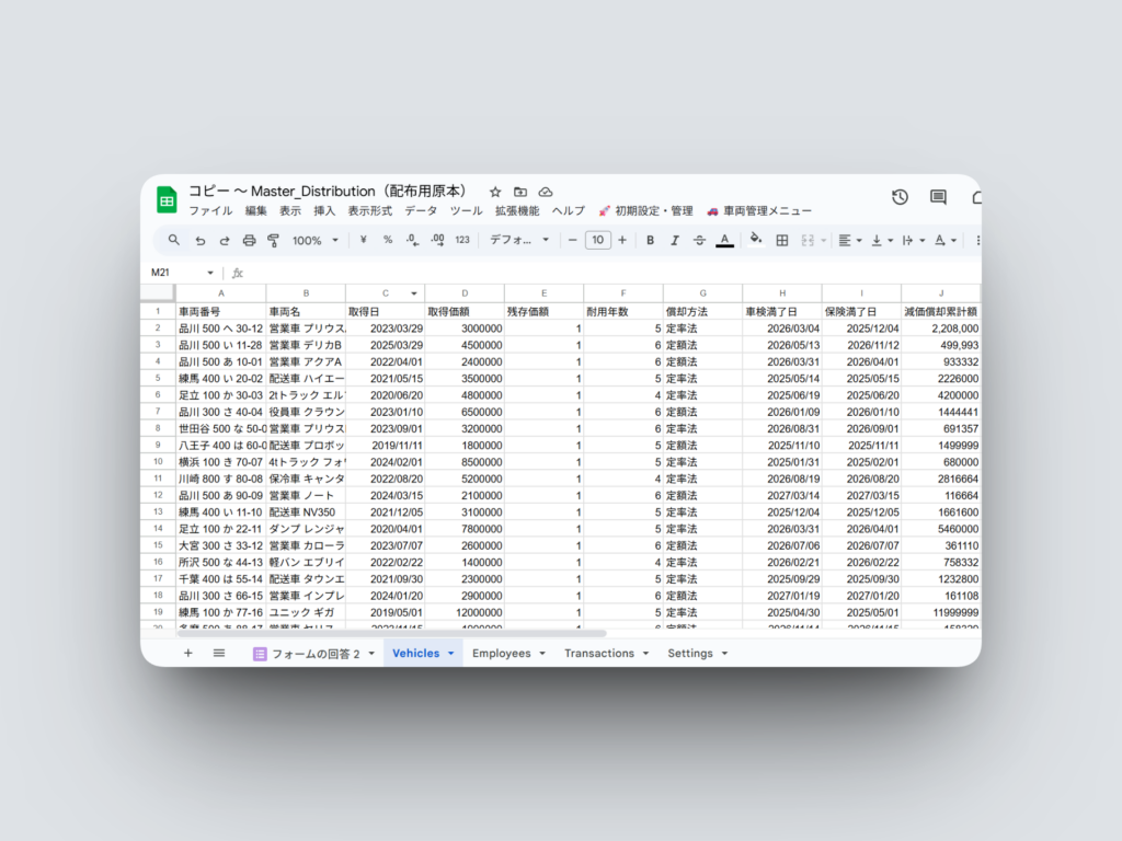 車両ごとの維持費(燃費、修繕費、保険料)が可視化されるため、「どの車両がコスト高か」を一目で判断。