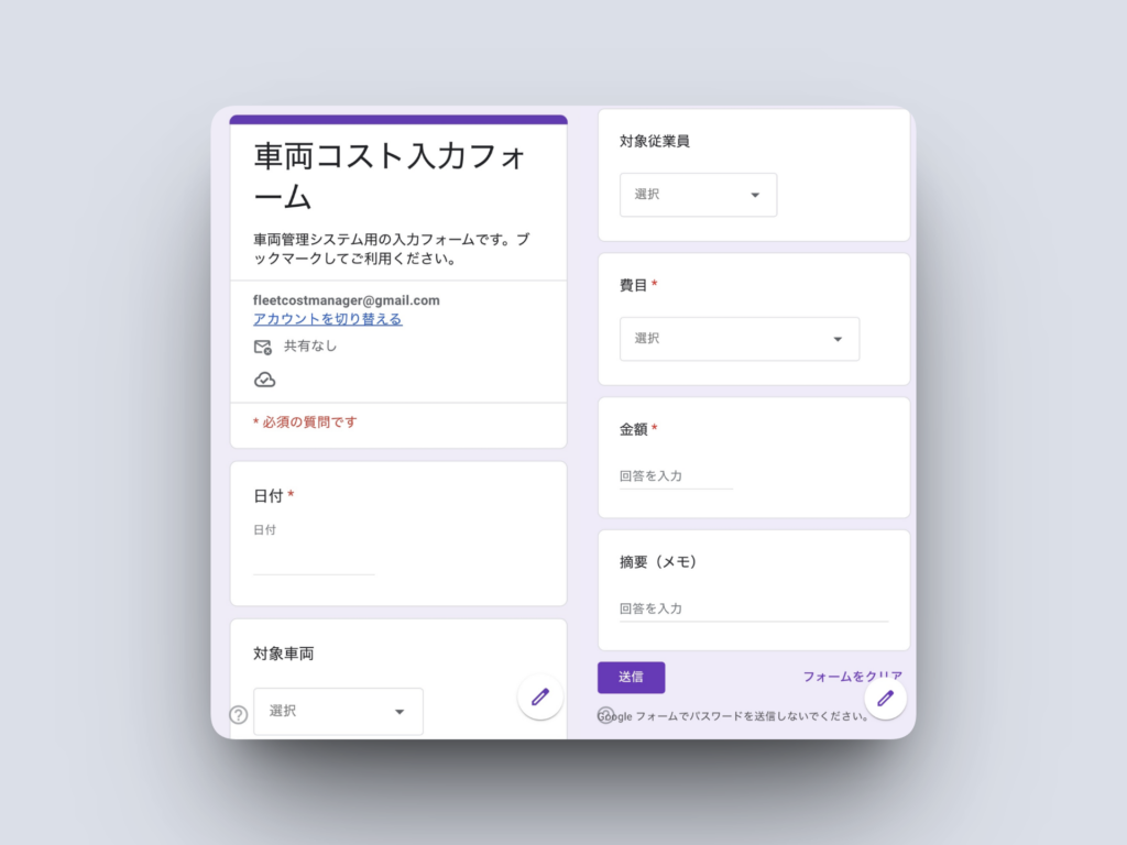 お気軽にお問い合わせください。fleetcostmanager@gmail.com